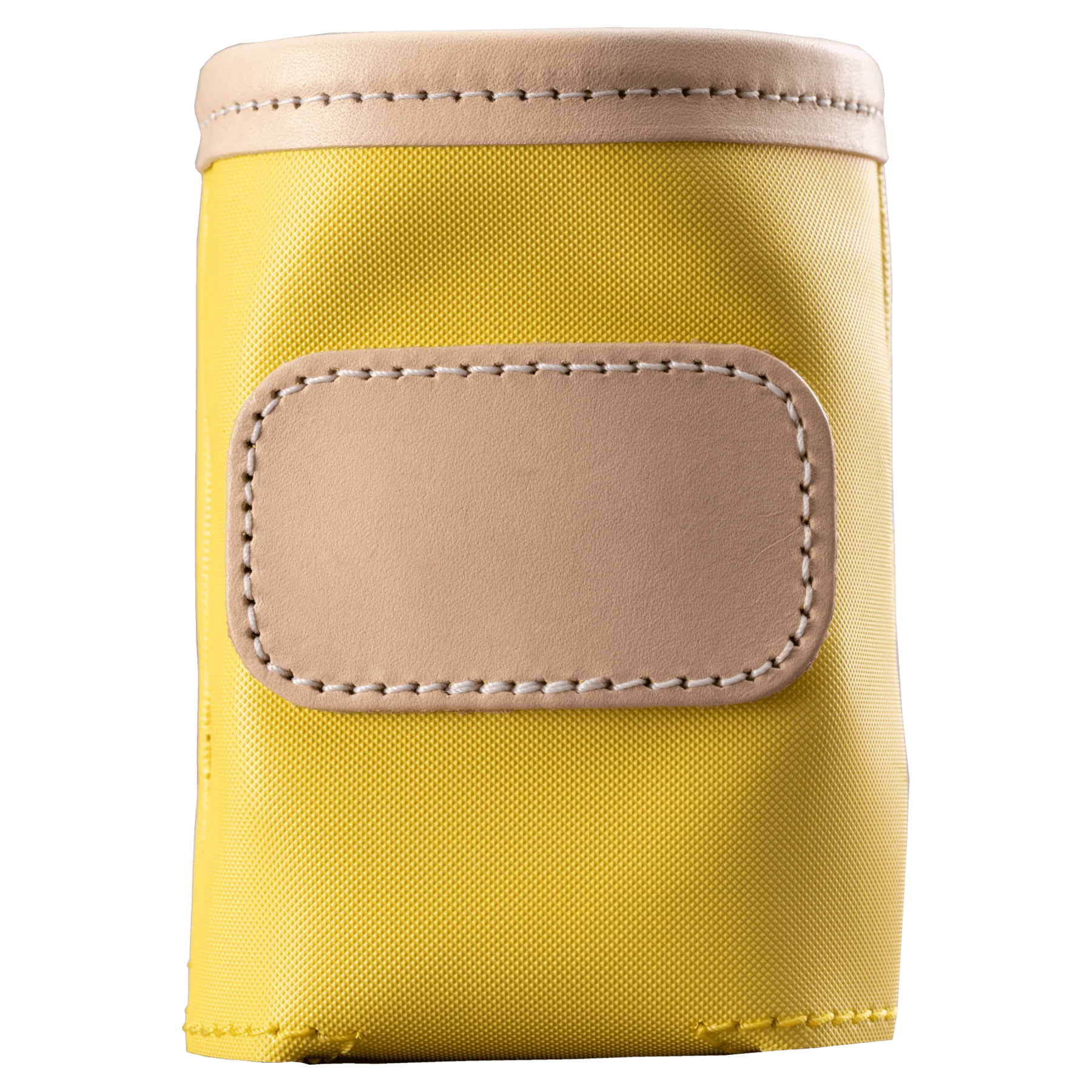 A new design for an old favorite. Keep your drinks cold with this insulated collapsible can cooler. Coated canvas with Natural Leather trim