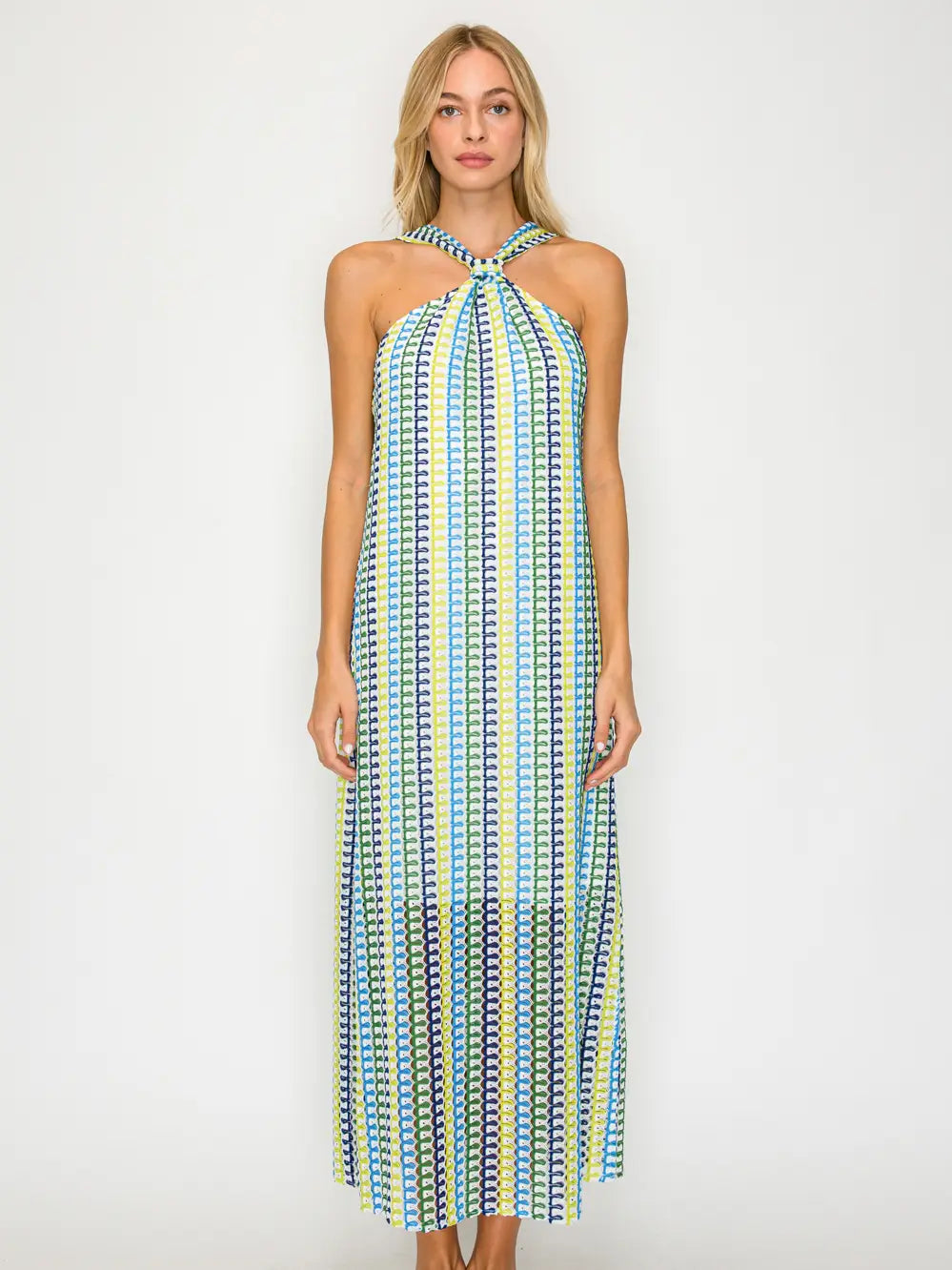 Dream Ruffle V-neck with Cropped Pant Fuchsia Stripe