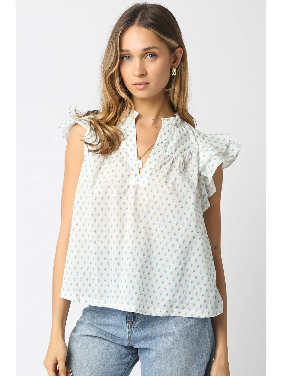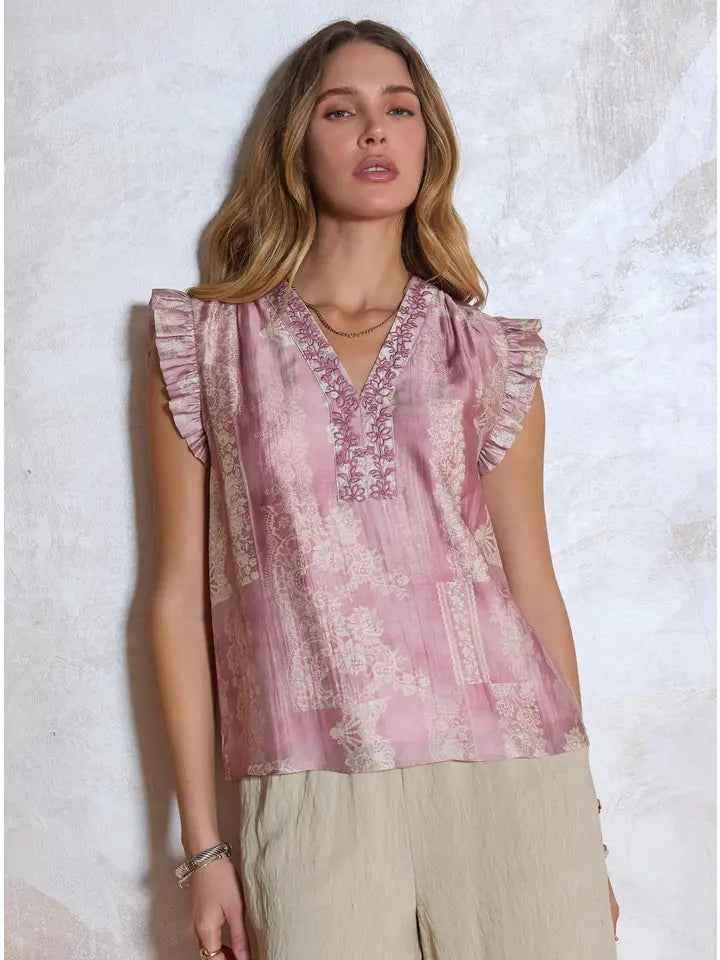 Hydrangea Ribbons Tie Top Ruffle Sleep Set
