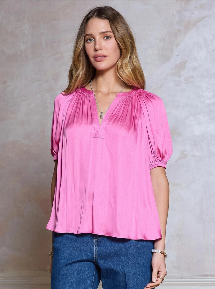DreamTech Sleeveless Cowl Top with Pintuck Shorts Fuchsia