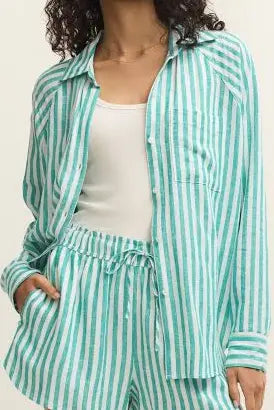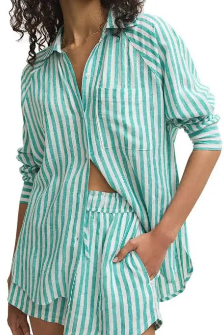 Addie Stripe Short Sleeve Button Up Sleep Shirt