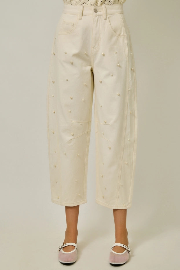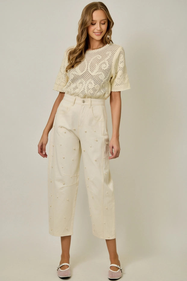 Happi Ecru Wash Pintuck Mid Rise Comfort Flare