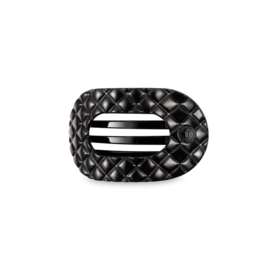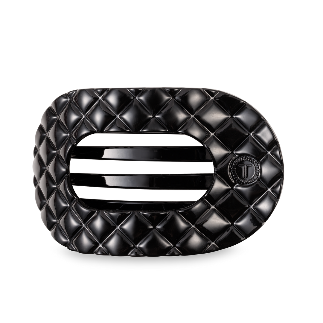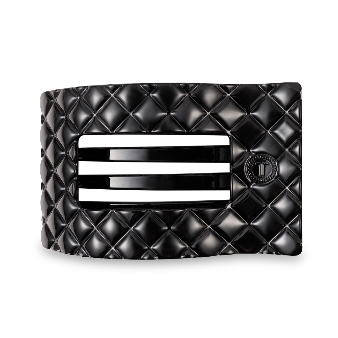 TELETIES - Flat Rectangle Hair Clip | Large | Jet Black Quilted