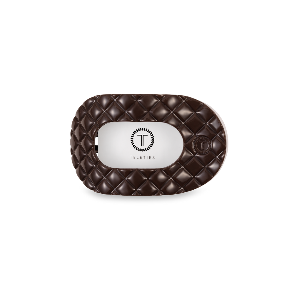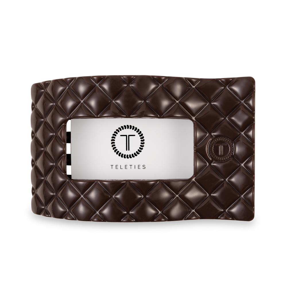 TELETIES - Flat Rectangle Hair Clip | Large | Truly Taupe Quilted