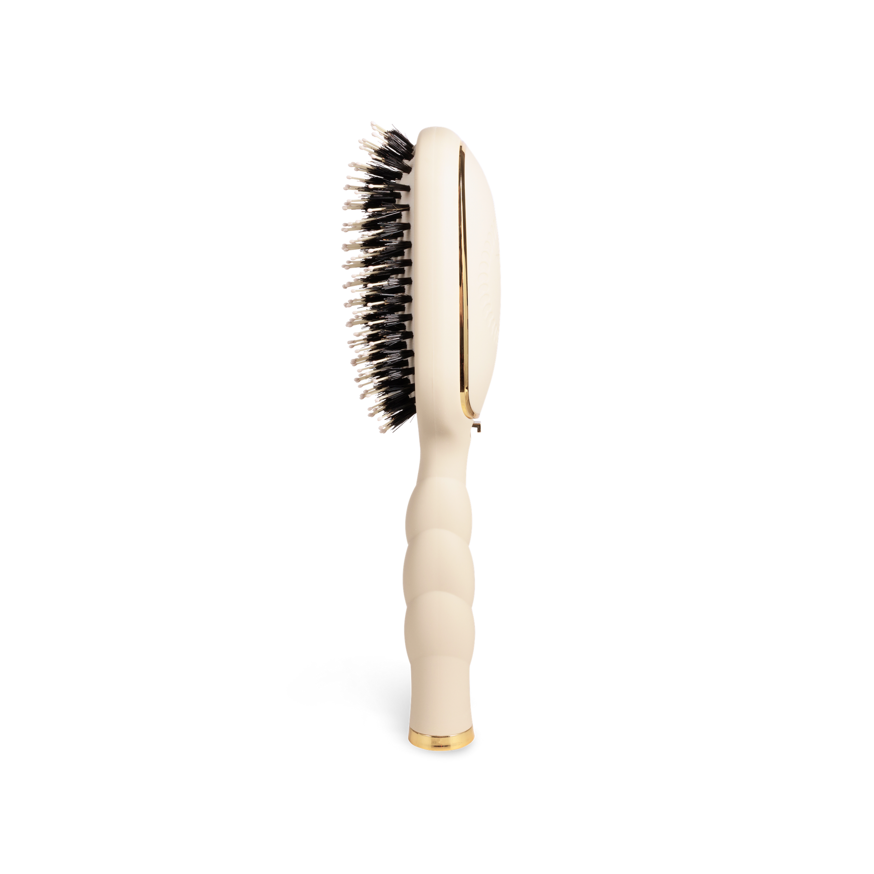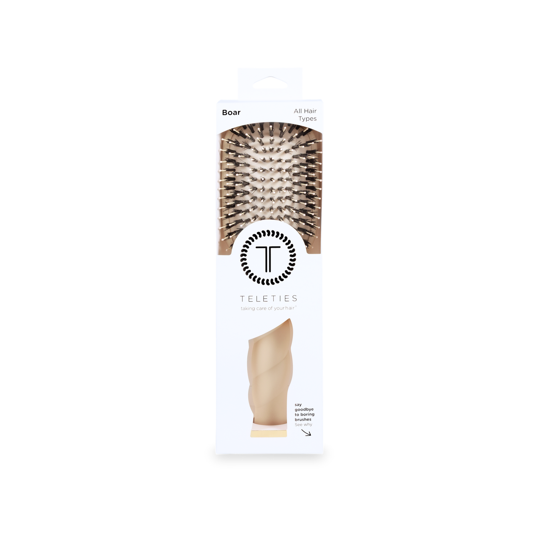 The Boar Bristle Brush in Tan brings effortless shine and frizz control to every stroke. The natural boar bristles smooth strands, distributes oils, and boosts shine from root to tip. Made with 60% nylon and 40% boar bristles, our boar hair brush is ideal for sleek styles, short hair, edge control, and men’s grooming.