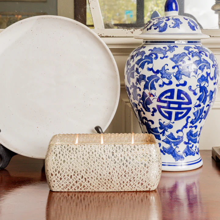 Add a touch of brilliance with Sweet Grace Candle #069. With its rounded rectangle shape and striking silver mosaic finish, this candle catches and reflects the light for a shimmering effect that elevates any room. Filled with 39.5 oz of our exclusive soy-blend wax and three wicks for an even burn, it offers up to 93 hours of the iconic Sweet Grace fragrance you love.