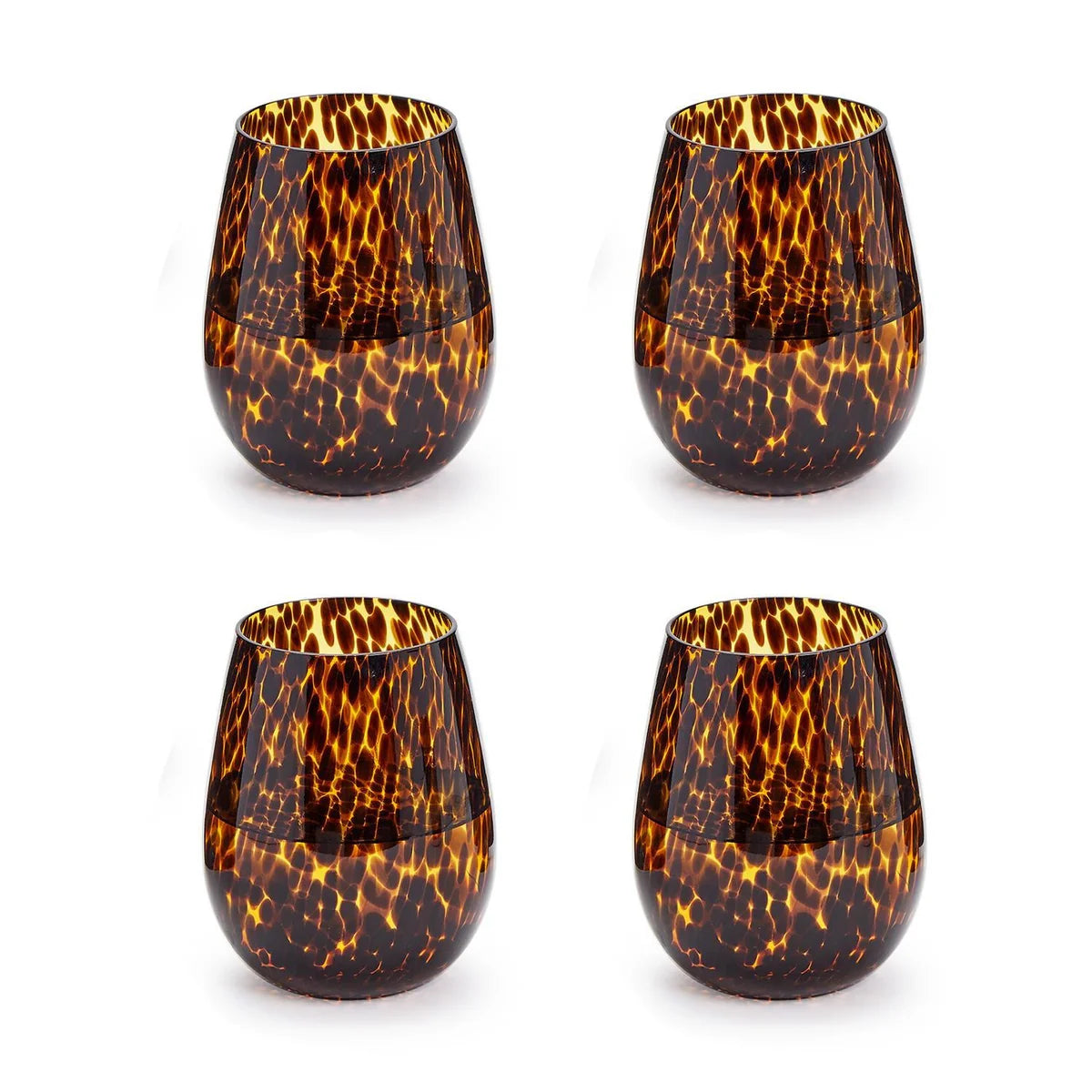 Crafted with care and designed to elevate your drinking experience, these 16 oz. glasses are a must-have for any wine enthusiast. The unique tortoise print adds a touch of sophistication, making them an ideal choice for both casual gatherings and formal occasions