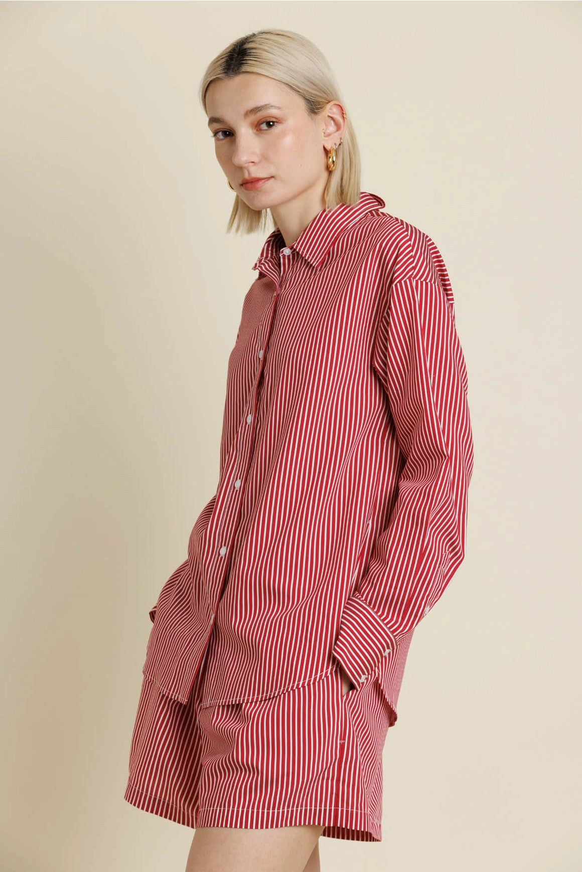 -Fabrication: Non-stretch poplin -Shirt collar with button down closure -Oversized fit -Coordinating boxer