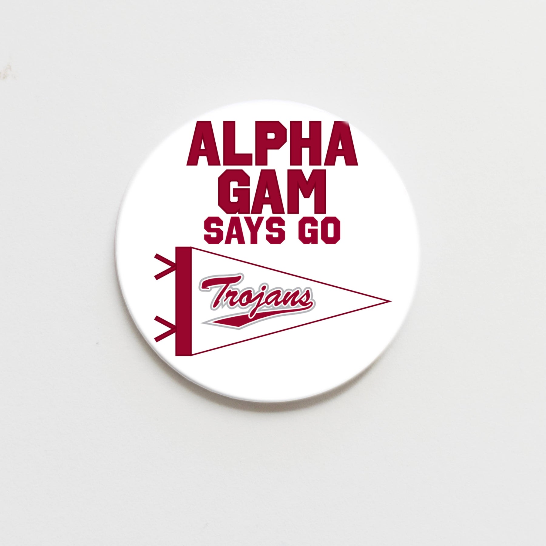 get ready to cheer on the Trojans with our officially licensed sorority game day buttons! these 3" buttons are perfect for showing off your Troy school spirit and your Greek affiliation! available for all Panhellenic sororities on the campus