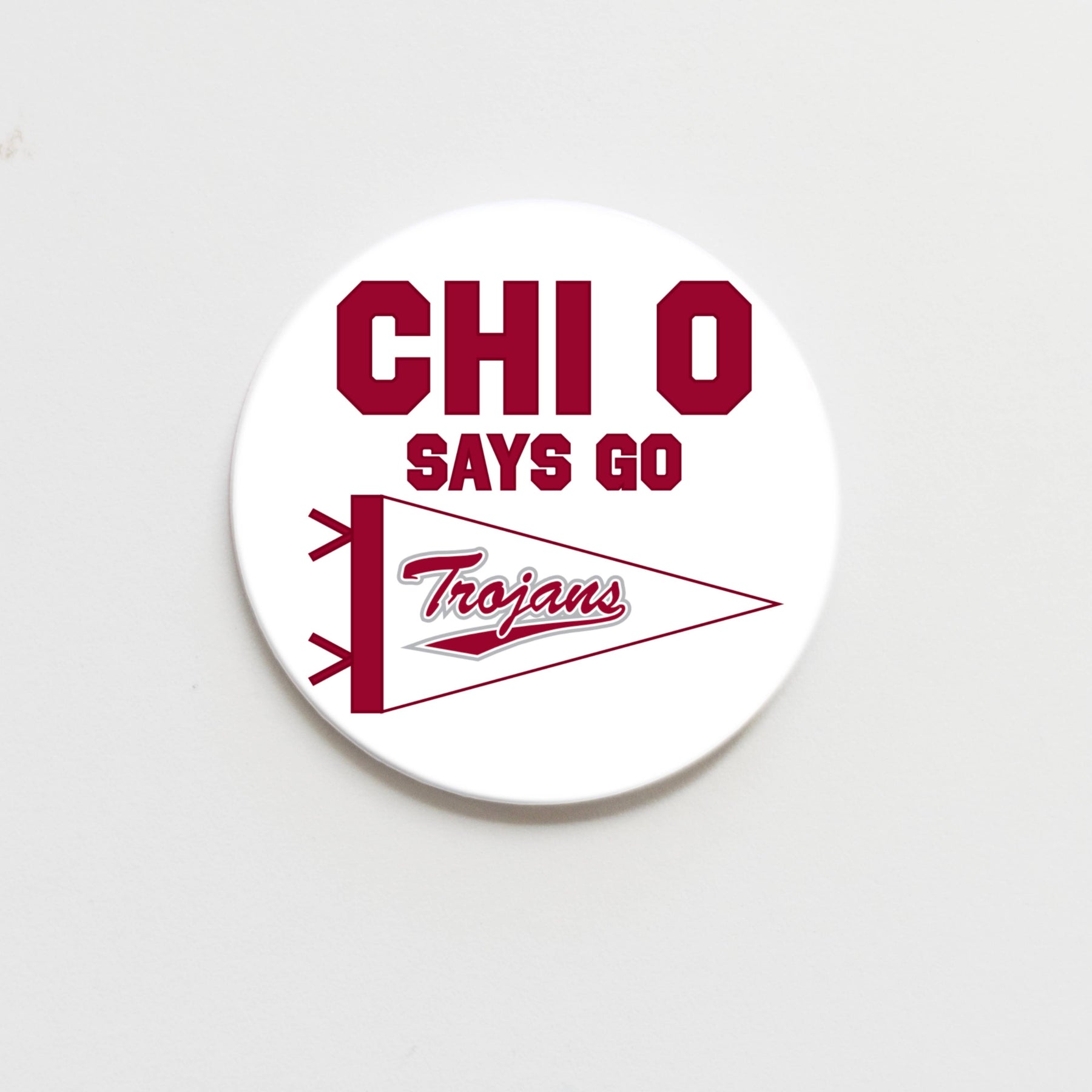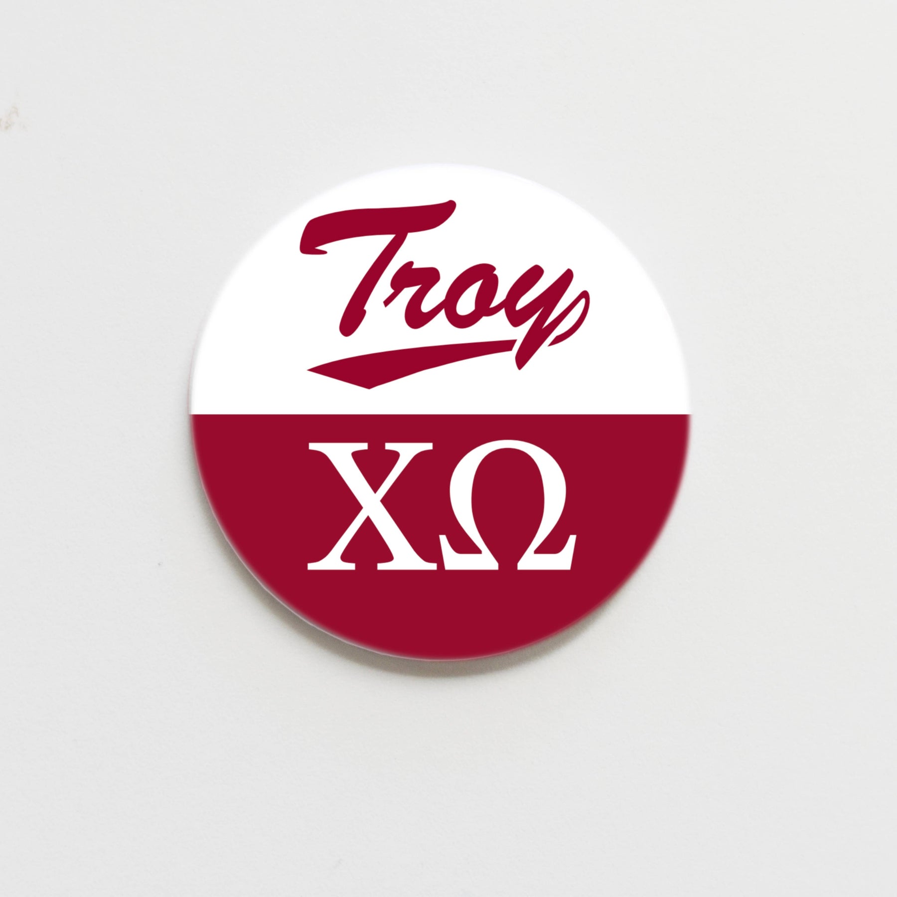 get ready to cheer on the Trojans with our officially licensed sorority game day buttons! these 3" buttons are perfect for showing off your Troy school spirit and your Greek affiliation! available for all Panhellenic sororities on the campus