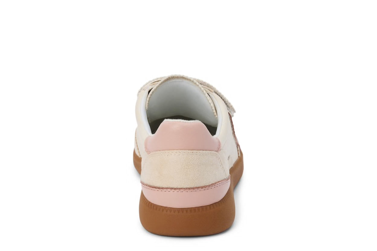 Add playful shine or sporty charm to your everyday look with this easy-on sneaker built for comfort and style. The mixed material upper brings eye-catching texture and detail, while the triple hook-and-loop straps make getting out the door a breeze. A padded collar and cushioned footbed provide support with every step, and the rubber outsole delivers reliable traction. Perfect for casual outfits with just the right touch of flair.